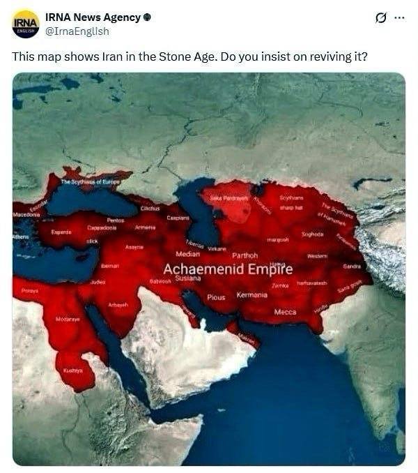 Иранската държавна информационна агенция IRNA публикува карта на древната Персийска империя от периода на Ахеменидите с надпис:
