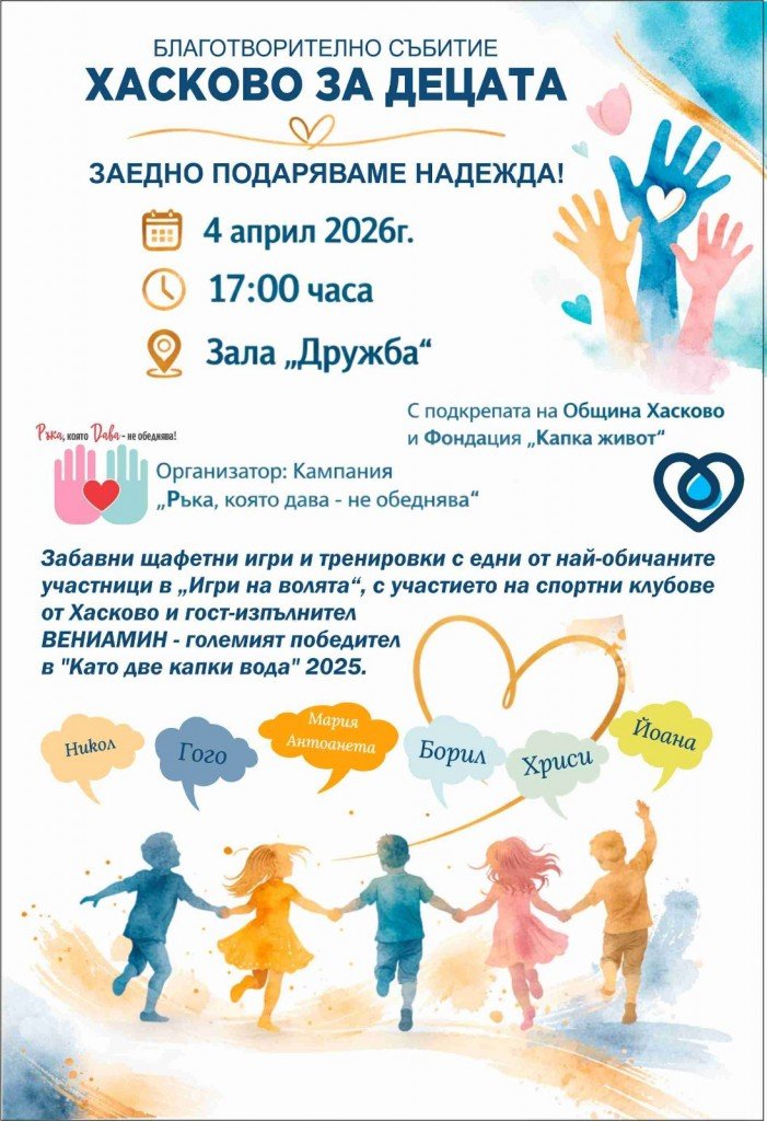 Събитието се реализира с подкрепата на Община Хасково и Фондация „Капка живот“.