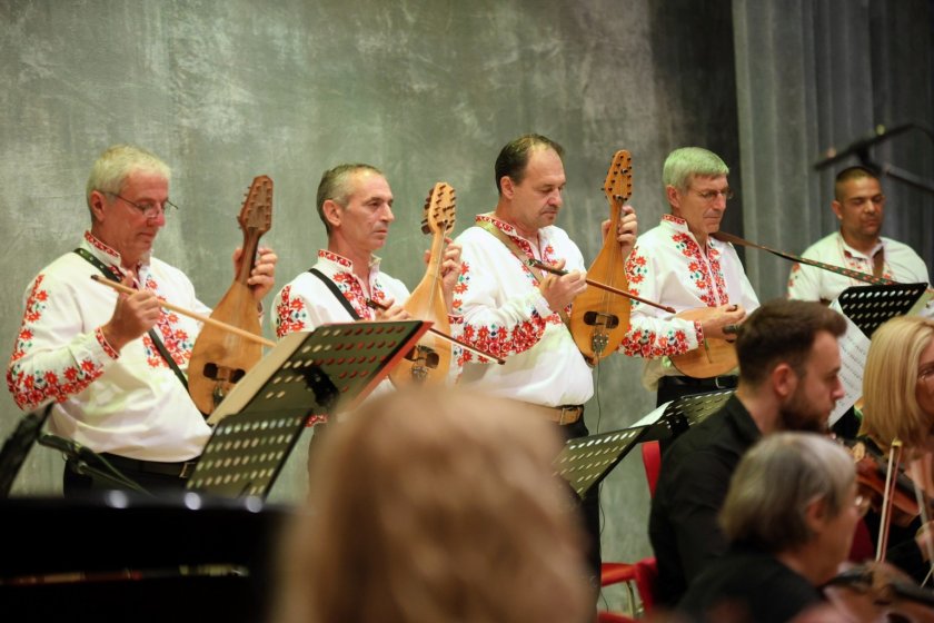 Народният оркестър на Хасково представя на учениците богатството на българската фолклорна музика.