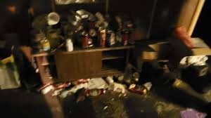 Огънят е засегнал част от обзавеждането. Опушени са стените. Обгорели са легло и шкаф. По пода имало разпилени отпадъци и следи от занемаряване. Сред тях били кенчета от бира и безалкохолни напитки, празни буркани, празни бутилки от алкохол, фасове и остатъци от храна.