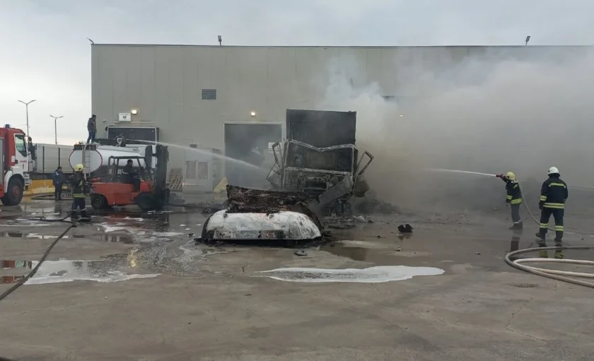 Инцидентът е станал по време на изчакване за митническа проверка, шофьорът е с изгаряния, а камионът – напълно унищожен